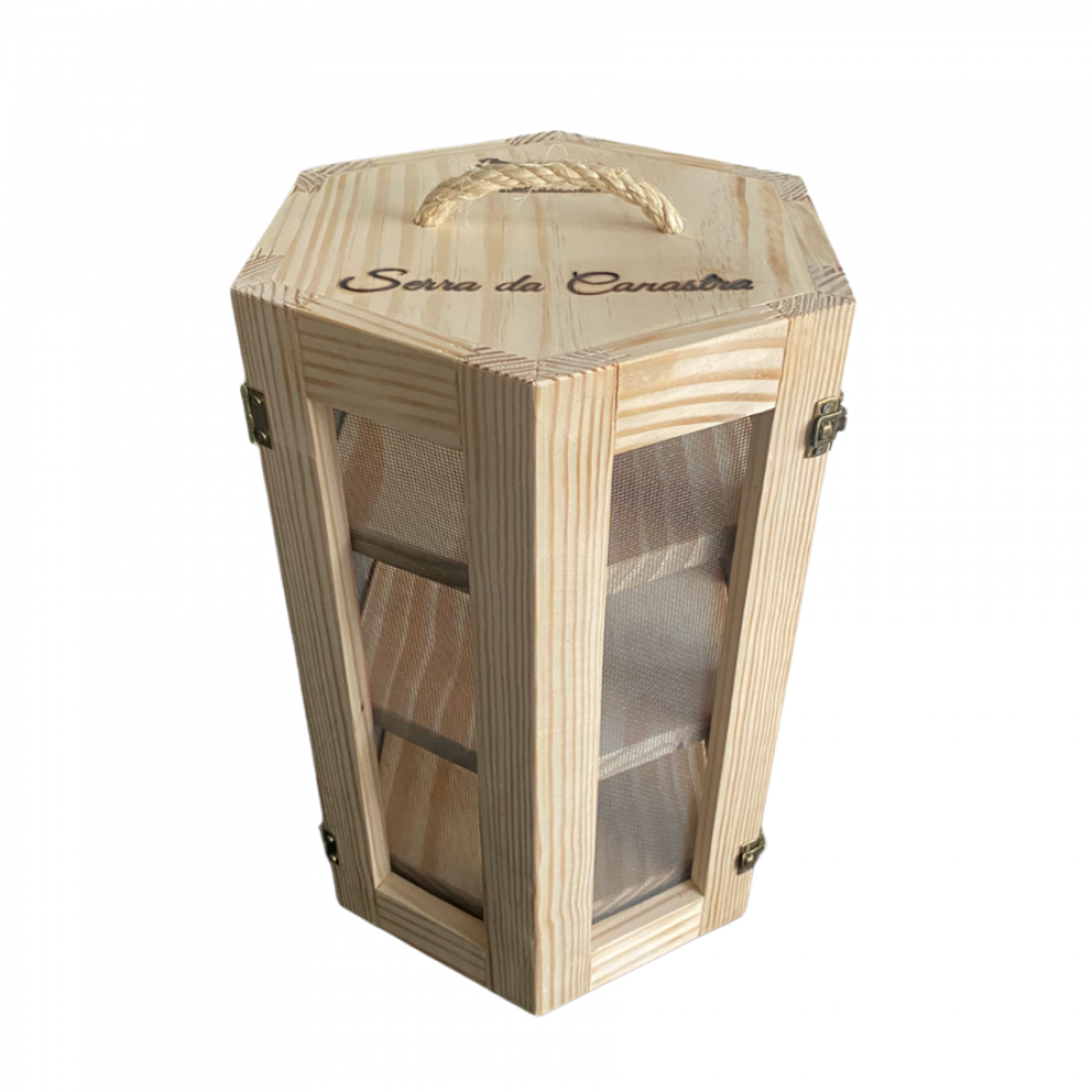 O maturador triplo para 3 Queijos já vem com telas de proteção que permitem que o ar circule sobre os produtos, evitando assim a presença de indesejados insetos e mosquitos. Ele serve para você colocar qualquer queijo que queira maturar ou curar e não queira colocar na geladeira para não estabilizar o processo de cura. Também serve para colocar salames e outros alimentos que não deseja colocar na geladeira.