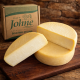 O Queijo do Johne pesa em torno de 1.0kg o tamanho tradicional inteiro, em torno de 250g no tamanho fracionado de cunha (1/4) e em torno de 500g no tamanho fracionado metade (1/2).